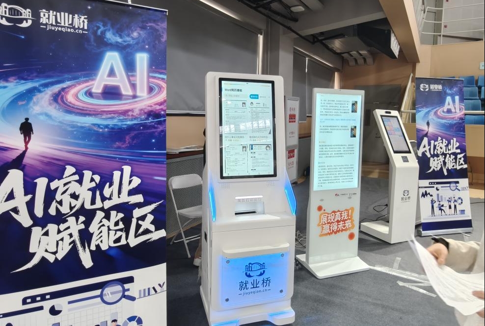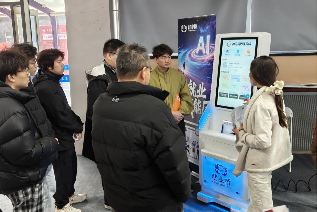 本次双选会现场,教育在线・就业桥精准部署人工智能简历一体机、人工智能落地式面试一体机、人工智能生涯探索一体机、人工智能就业服务一体机四款核心设备,实现简历优化、面试演练、生涯规划、岗位匹配求职全流程覆盖。系列设备操作便捷、功能精准,一经亮相便吸引众多学生体验,有效破解了毕业生求职过程中简历薄弱、面试经验不足、职业方向迷茫等痛点难点,为双选会的顺利开展提供了坚实的智能支撑,赢得现场师生及用人单位的一致认可。
