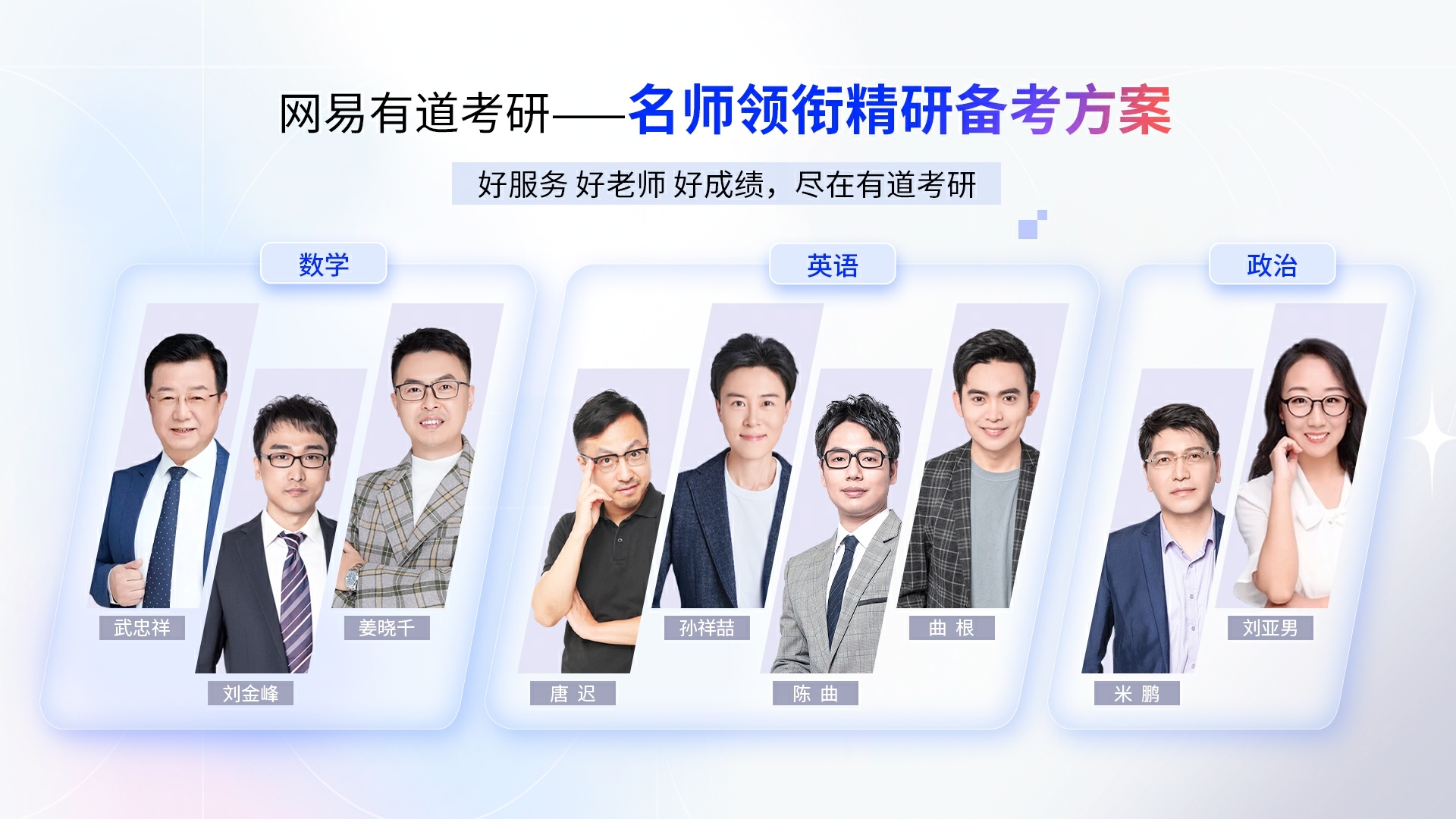 强大的师资是课程质量的基石。网易有道考研与各位名师不仅是合作,更是长期并肩的伙伴。其中,武忠祥老师为独家合作,米鹏老师为线上独家合作,唐迟老师为线上直播独家合作;三位老师与有道的平均合作年限已近8年。这份信任与坚守,保障了教学理念的连贯性与课程内容的持续优化。