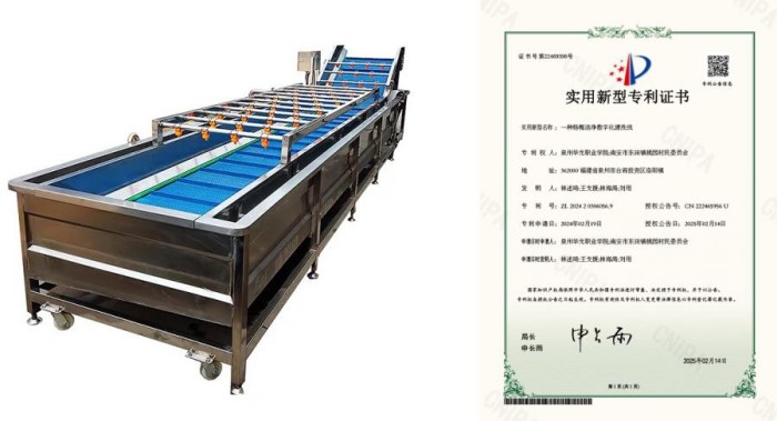 1.举办杨梅节助力乡村振兴:团队与南安市桃园村委会携手举办首届和第二届桃园杨梅节,通过精彩的节庆活动,大力推广杨梅产业,有效提高杨梅的知名度和美誉度。针对杨梅清洗洁净难题,团队与村委会共同研发《桃园杨梅洁净数字化清洗线》专利项目。该清洗线运用先进的数字控压喷淋技术和数控红外线技术,能够高效清除杨梅杂质和细菌,显著提高杨梅的卫生安全性和加工品质。