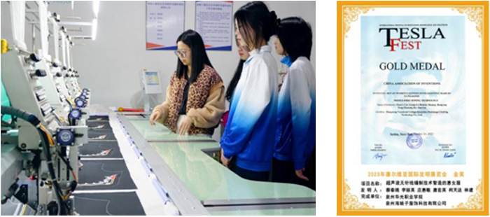 2.非遗惠女服饰传承创新:走进惠安县小岞镇前海村,团队运用智能绣花技术传承惠女服饰技艺,积极创新发展新质生产力。成功研发多元惠安女服饰,并在塞尔维亚国际发明展览会上斩获金奖。此外,团队还与村企泉州海娘子服饰科技有限公司合作非遗项目“超声波无针线缝制技术智造的惠女服”,进一步推动非遗文化的传承和创新,为乡村振兴注入文化活力。