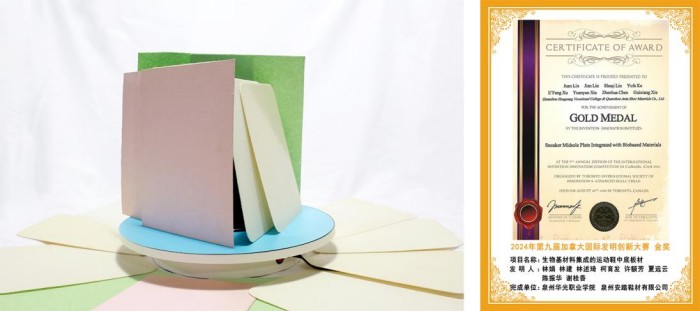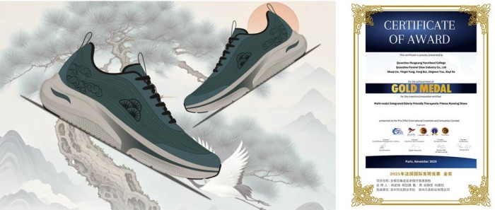1.国际发明创新竞赛:大篷车科技团队与多家企业开展产教融合项目,并在国际发明创新竞赛中屡获佳绩。2024年,与泉州安踏鞋材有限公司合作的《生物基材料集成的运动鞋中底板材》项目参加第九届加拿大国际发明创新竞赛荣获金奖;与福建七匹狼实业股份有限公司合作的《节能增效的智能缝纫模板》项目参加2024年法国巴黎艾菲尔国际发明竞赛荣获金奖。2025年,与泉州贵人鸟体育用品有限公司合作的《负载活性生物菌群的抗菌除臭纺织材料》项目参加第十届加拿大国际发明创新竞赛荣获金奖,并被授予卓越特别大奖;与泉州凡美鞋业有限公司合作的《多模态集成适老理疗健身跑鞋》项目参加法国巴黎艾菲尔国际发明竞赛荣获金奖。