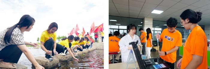 4.河流保护行动:大篷车科技团队带领学生从惠安县紫山镇官溪村出发,进入黄塘溪鸡笼尖的上游支流,沿途经过黄塘溪松溪段、下茂段等河岸进行垃圾清理。同时,采集不同地域支流水样,运用校村联合研制的《数字传感水质检测仪》进行水样质量检测。此外,团队还开展环境卫生宣传活动,倡导村民爱护河流、保护环境,增强村民的环保意识。