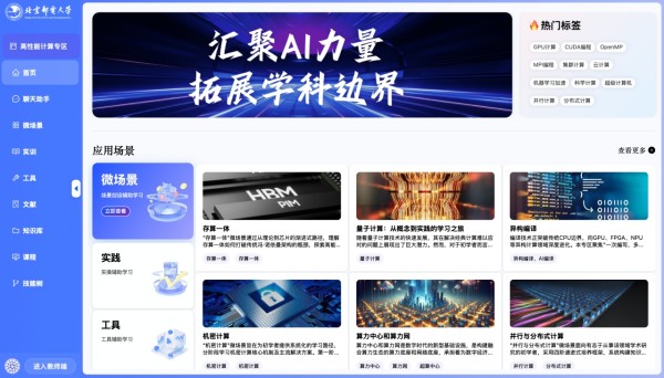 平台同时聚合DeepSeek、通义千问等百余国产主流模型,融合三大运营商异构算力资源,建成“模型星座+算力天池+数据海洋”三位一体的教育智能基座。对接中国移动“梧桐·鸿鹄”平台、中国电信实践实训平台等10个产业一线实践环境,构建“实训群峰”。平台充分发挥学校作为信息科技创新重要策源高地的科研优势,将科研势能转化为育人动能,围绕量子计算、具身智能、数据安全等20余个前沿方向,创设100个“AI+X”交叉育人案例,建设“场景园地”;面向个性化、多样化应用开发需求,开发1000余个可组合、可迭代智能体组件,构建“工具宝箱”。实现教育大模型从“资源供给”向“系统驱动”、从“工具辅助”向“生态赋能”的体系跃迁,为高等教育走向智能化生产范式提供坚实支撑。