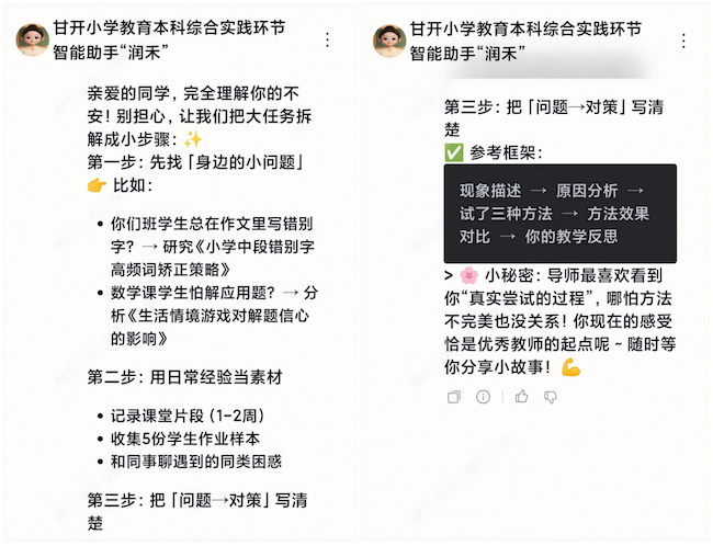“润禾”智能体的成功部署不仅为全省办学体系小学教育本科专业的综合实践环节教学提供了有力支撑,也为全省开放教育课程体系提供了可复制的“数智赋能”样板,助力学校人才培养质量迈上新台阶。