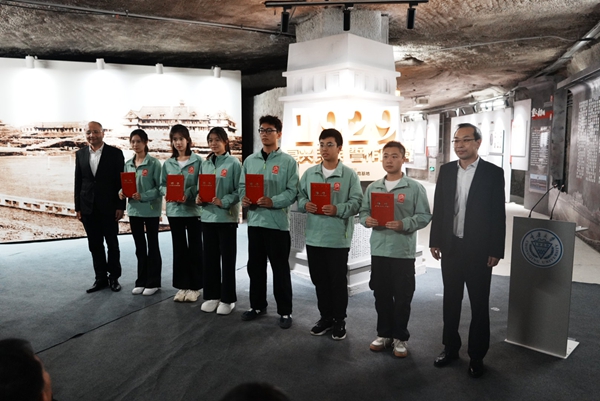 仪式结束后,与会领导和师生代表共同参观防空洞爱国主义教育基地,通过历史文物、图文展陈与生动解说,深入了解抗战烽火中的重庆大学救亡图存,赓续学脉,树立起自强不息的教育丰碑历史。