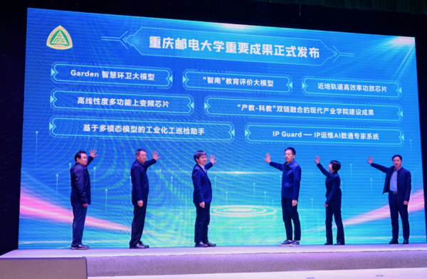 本次大会的亮点之一是重庆邮电大学多项重要科技成果的集中展示与发布。在人工智能领域,学校发布了两项“国内首个”大模型,展现解决行业痛点、提升智能化服务水平的强大实力。“Garden 智慧环卫大模型”是国内首个面向山地城市的解决方案,通过智能识别、精准调度与专家闭环优化,已在重庆试点,为智慧城市绿色治理提供可复制方案;而“‘智南’教育评价大模型”则是国内首个教育评价专用大模型,以数据驱动实现教育现状分析、趋势预测及评语自动生成,已在重庆高校监测评价中大幅提升效率,有力推动智慧教育体系构建。