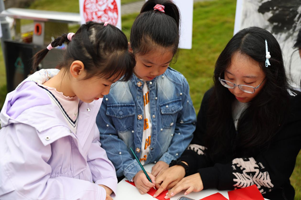 荷塘边的文化体验区,重庆中华传统文化研究会特邀专家李本森坐镇长案,为师生们指点书法笔法、讲解绘画技巧。现场,一位学生清亮地问道:“李老师,您看我这‘荷’字写得如何?”这一问题,道出了文化体验区的火热氛围。古老的技艺从书本走向实践,师生们在提按转折间感受文化脉动,在笔墨剪纸中坚定文化自信。指尖传承技艺,心中厚植情怀,这场文化体验让非遗不再是遥远的符号,而成了可触可感的青春记忆。