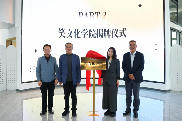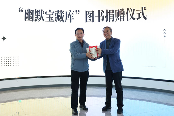 期间,马俊杰、陈晓莉、张亮、吕翊共同为笑文化学院揭牌;吕翊向马俊杰授予创始院长的荣誉称号并颁发证书;马俊杰将其个人珍藏的幽默图书捐赠给学校,建立“幽默宝藏库”。