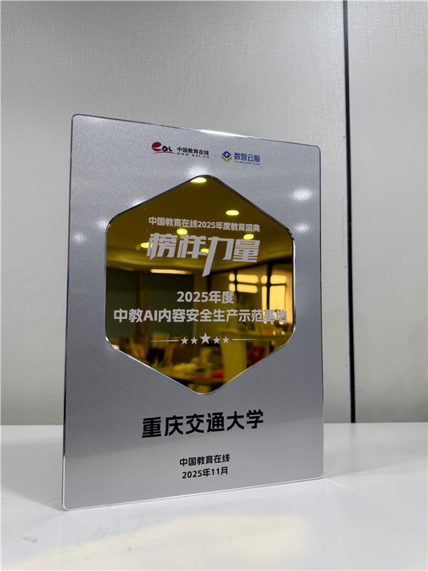 此次重庆交通大学荣获“2025年度中教AI内容安全生产示范基地”称号,是对学校内容生产的巨大鼓励与鞭策。未来,学校将以此为新的起点,继续加大在内容、对内外品牌形象塑造方面的投入与创新力度,进一步整合资源、优化平台、丰富内容、提升服务,充分发挥在教育传播、文化传承、社会服务等方面的独特作用,为学校建设营造更加良好的舆论环境,为推动高等教育事业的高质量发展贡献更多的智慧与力量。