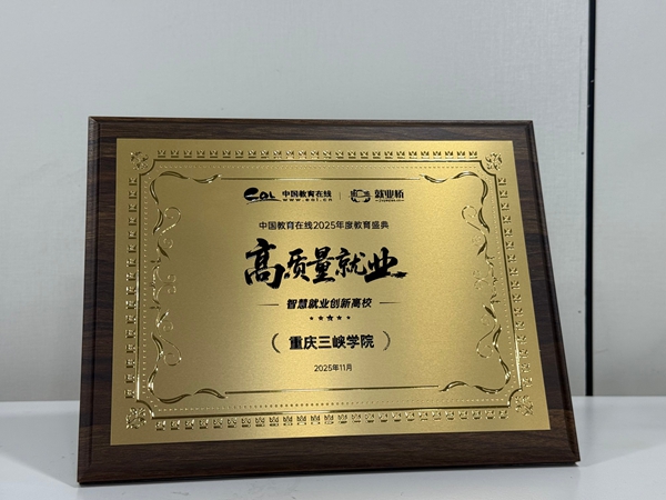 为深入贯彻党中央、国务院关于促进高校毕业生等青年就业创业的决策部署,落实《人力资源社会保障部 教育部 财政部关于做好2025年高校毕业生等青年就业工作的通知》等最新政策精神,挖掘和推广就业工作典型。中国教育在线·就业桥举办了“高质量就业”2025年度教育盛典活动,表彰高校就业工作数智化转型,创新实践的优秀案例,对推动高校就业跨越式发展,汇聚创新动力的榜样单位进行推广。重庆三峡学院荣获“2025高质量就业·智慧就业创新高校”荣誉称号。