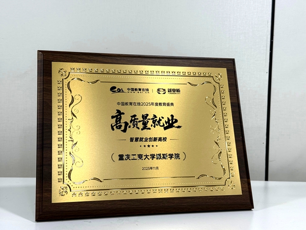 为深入贯彻党中央、国务院关于促进高校毕业生等青年就业创业的决策部署,落实《人力资源社会保障部 教育部 财政部关于做好2025年高校毕业生等青年就业工作的通知》等最新政策精神,挖掘和推广就业工作典型。中国教育在线·就业桥举办了“高质量就业”2025年度教育盛典活动,表彰高校就业工作数智化转型,创新实践的优秀案例,对推动高校就业跨越式发展,汇聚创新动力的榜样单位进行推广。重庆工商大学派斯学院荣获“2025高质量就业·智慧就业创新高校”荣誉称号。