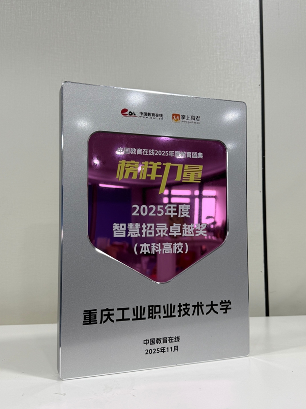 近日,中国教育在线“榜样力量·2025年度教育盛典”优秀案例名单公布。重庆工业职业技术大学凭借在招录工作中对智慧招录相关技术工具的高水平运用及卓越成果,获评“2025年度智慧招录本科高校”。