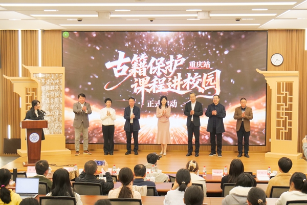 11月6日下午,“古籍保护课程进校园·重庆站”启动仪式暨首场活动在重庆大学举行。此次活动由国家图书馆(国家古籍保护中心)、重庆市文化和旅游发展委员会主办,重庆图书馆(重庆市古籍保护中心)和重庆大学共同承办。