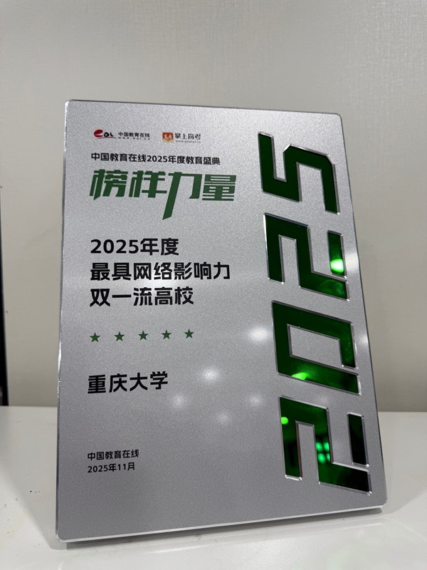 近日,中国教育在线“榜样力量·2025年度教育盛典”优秀案例名单公布。重庆大学凭借极具创新性与前瞻性的招生宣传策略,以及扎实过硬的宣传执行实力,从众多高校中突围,获评“2025年度最具网络影响力双一流高校”。