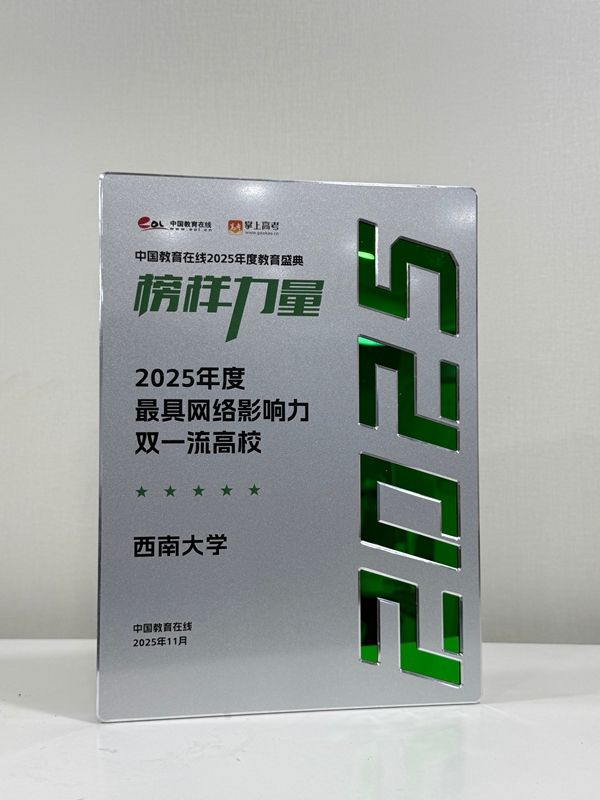近日,中国教育在线“榜样力量·2025年度教育盛典”优秀案例名单公布。西南大学凭借极具创新性与前瞻性的招生宣传策略,以及扎实过硬的宣传执行实力,从众多高校中突围,获评“2025年度最具网络影响力双一流高校”。
