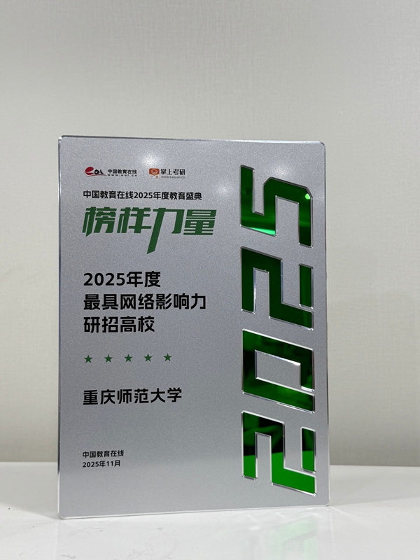 近日,中国教育在线“榜样力量·2025年度教育盛典”优秀案例名单公布。重庆师范大学凭借极具创新性与前瞻性的招生宣传策略,以及扎实过硬的宣传执行实力,从众多高校中突围,获评“2025年度最具网络影响力研招高校”。