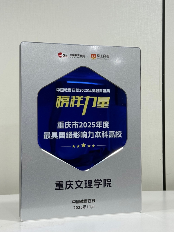 近日,中国教育在线“榜样力量·2025年度教育盛典”优秀案例名单公布。重庆文理学院凭借极具创新性与前瞻性的招生宣传策略,以及扎实过硬的宣传执行实力,从众多高校中突围,获评“2025年度最具网络影响力本科高校”。