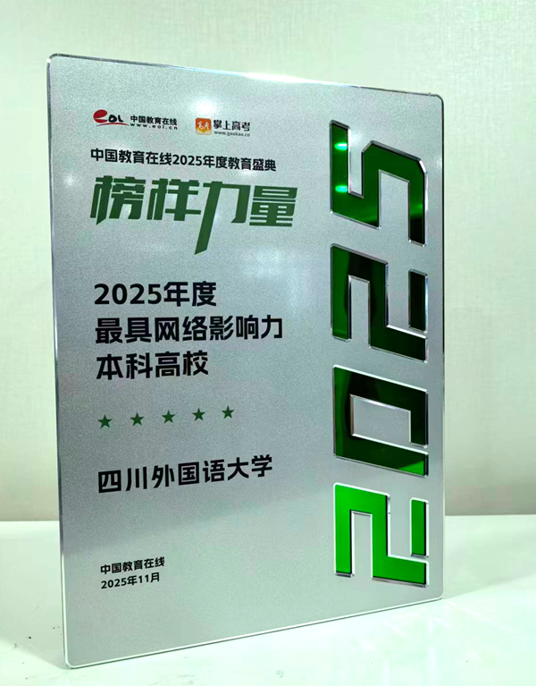 近日,中国教育在线“榜样力量·2025年度教育盛典”优秀案例名单公布。四川外国语大学凭借极具创新性与前瞻性的招生宣传策略,以及扎实过硬的宣传执行实力,从众多高校中突围,获评“2025年度最具网络影响力本科高校”。