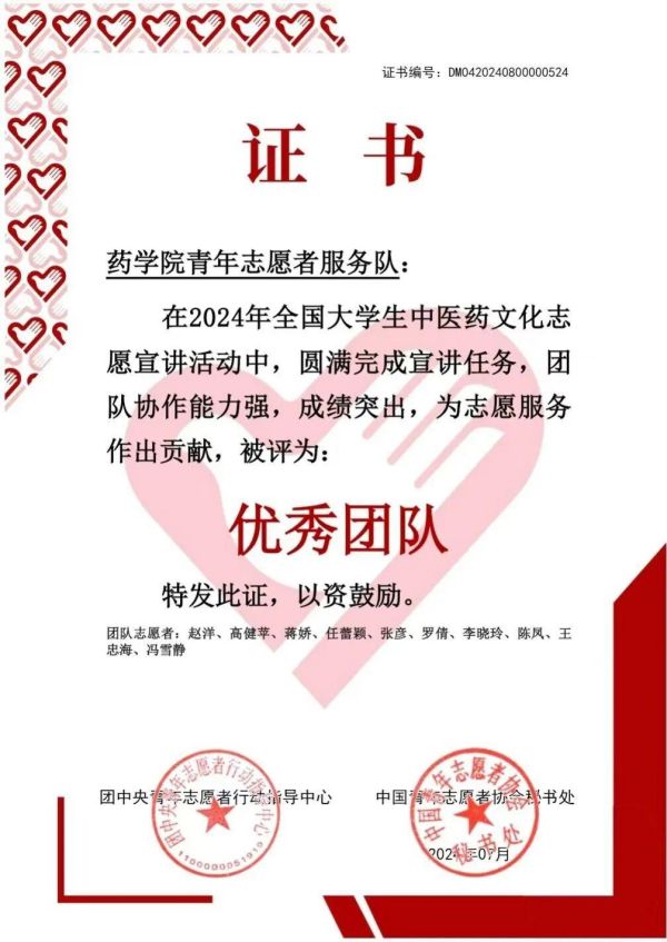 药学院青年志愿者服务队获评团中央“优秀团队”