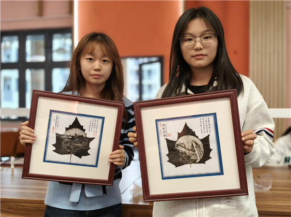 “以前总觉得‘美’离生活很远,直到在叶雕课上,一片普通的叶子在我手中慢慢变成家乡熟悉的风景。”学生们以“北京五景”“重庆十景”等为主题,亲手进行叶雕制作。从叶片固定、模板对位,到轻刷绘制、烘干定型,每一个步骤都需专注与细致。随着叶脉逐渐清晰、图案透亮成型,原本普通的树叶蜕变为承载风景与情感的艺术作品。戏剧影视学院肖佳英同学感慨道,“原来美就藏在我们触手可及的日常里。书院的美育课程让我明白,生活美学不是高高在上的概念,而是用心观察、动手创造的实践过程。”