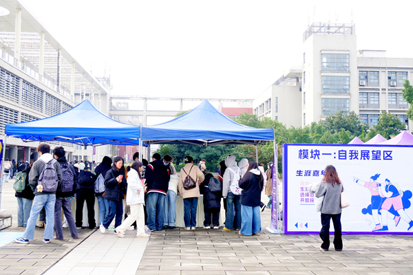 为推动大学生职业生涯教育,引导学生树立正确择业就业观念、提升职业规划能力,11月18日至20日,重庆电子科技职业大学首场“科技筑梦・职引未来”生涯嘉年华在学子芯广场成功举办。活动由学校主办、中国教育在线提供技术支持,以“趣味互动 + 启发引导”为核心,通过七大模块、八大关卡的沉浸式体验,为全校学子搭建起生涯启蒙与职业探索的实践平台,创新推动职业生涯教育前置落地。