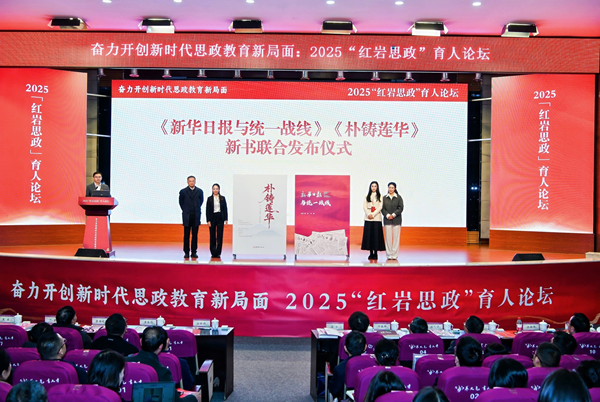 活动现场,还举行“红岩”主题系列首发仪式,包括全国首本公开发行的“红岩思政”育人读物《红岩少年》新书首发,《新华日报与统一战线》《朴铸莲华》新书联合发布,全国首个设立在校园内的王朴烈士陈列馆开馆等,共同营造“红岩思政”育人新生态。