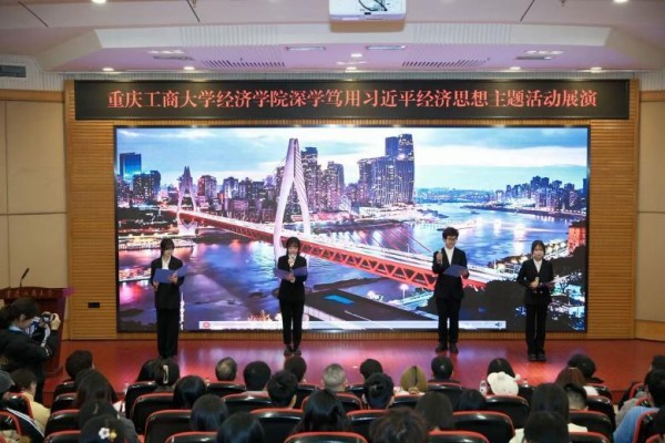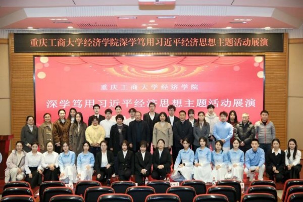 12月4日下午,重庆工商大学经济学院成功举办了“深学笃用习近平经济思想”主题活动展演。这场集朗诵、合唱、理论宣讲与成果展示于一体的“思想盛宴”,汇聚了校内外领导、师生及社区代表200余人,探索如何将习近平经济思想转化为青年学子的“实践底色”与“青春担当”。