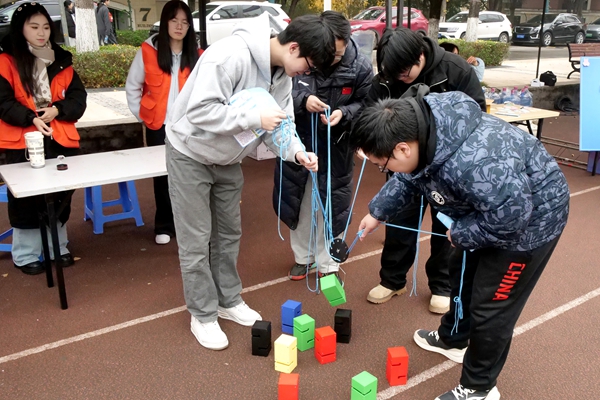 “梦想之城”现场搭建“城市模型”,学生将写有职业目标的“梦想卡片”粘贴在对应行业区域,形成涵盖金融监管、数字经济、跨境电商等领域的“职业蓝图”。“齐心协力”通过游戏方式,培养学生职场必备的协作能力。