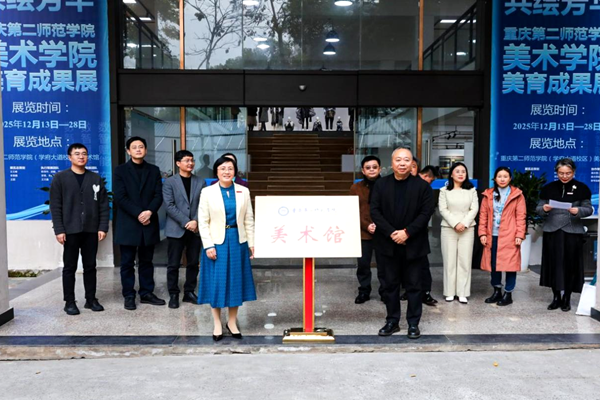 12月14日,重庆第二师范学院举行美术馆揭牌仪式,美术馆正式开馆,以“美育润心·共绘芳华”为主题的美育成果展作为开馆首展同步启幕,成为当天在该校举行的中国西部高校社会美育建设年会暨2025重庆市高教学会美育专委会年会的一大亮点。