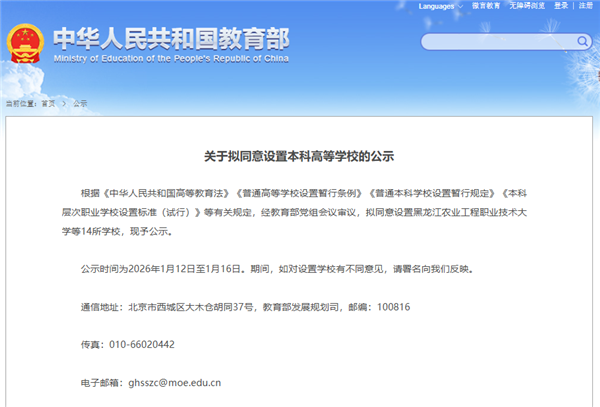 公示期为2026年1月12日至1月16日。期间如无异议,上述学校更名与设置程序将正式完成。
