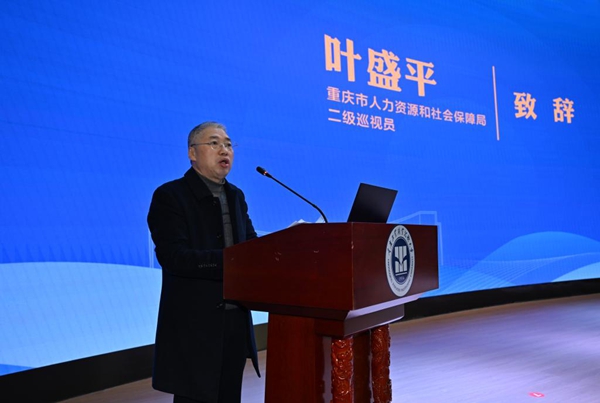 大会第一阶段,叶盛平代表重庆市人力资源和社会保障局致辞。他指出,重庆正迭代升级“33618”现代制造业集群体系,亟需高层次技术技能人才,学校作为全市职业教育“排头兵”,召开此次大会意义重大。市人社局将从政策保障、技能竞赛平台搭建、人才服务优化三方面入手,为学校人才队伍建设提供精准支持,共同营造“近悦远来”的人才生态。