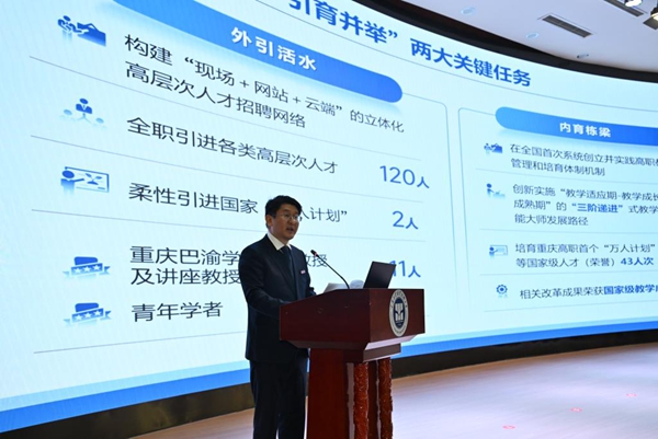 第三阶段,三位不同类型的人才代表分享了成长经验。国家级人才代表裴江红、科技创新人才及新重庆人才代表杨洋、高技能人才代表张玲,分别结合自身教学科研、技能提升经历,讲述了在学校平台上的成长故事,为全体教师提供了宝贵借鉴。