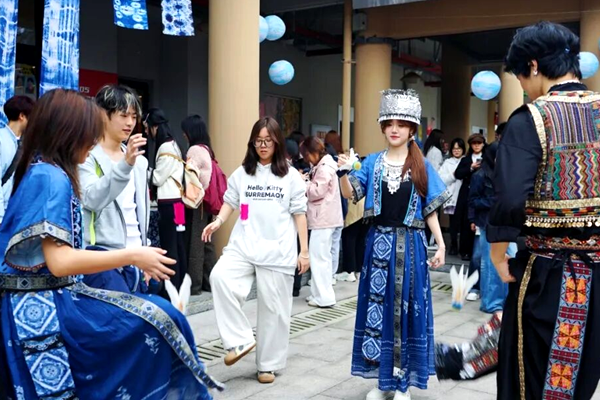“以前总觉得非遗是很遥远的东西,今天亲手做了扎染、剪了窗花,才发现传统手艺其实很有意思。”来自学校数字经济商学院大三的学生罗俊说。