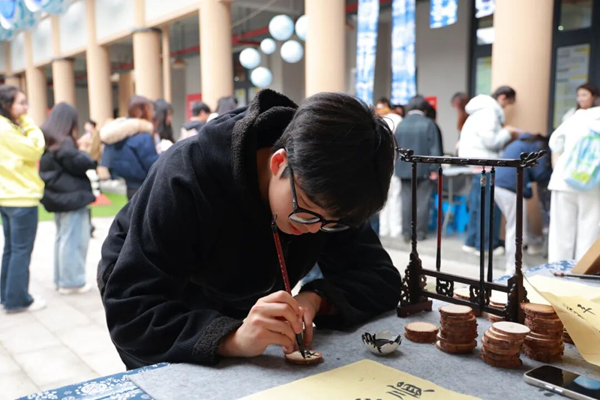 最具人气的当数活动外围的多元非遗体验区。重庆移通学院5个学生社团联手打造了沉浸式实践平台,青团手作、剪纸编结、投壶踢毽、苗韵书法、草木蓝染……丰富的体验项目覆盖手工、竞技、书画等多个领域,同学们亲手实践、趣味互动,在指尖技艺中感受非遗匠心,把春日美好与传统手艺“带回家”,真正实现“可看、可品、可玩、可学”的全方位文化体验。