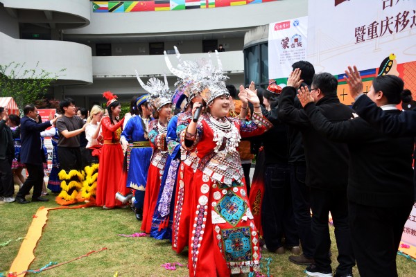 活动现场,土家族、苗族、壮族、维吾尔族、汉族等40个民族的特色文化元素相互交融、交相辉映。开幕式上,重庆移通学院党委书记何先刚发表致辞,他表示重庆移通学院始终将民族团结进步教育深度融入完满教育育人体系,依托“民族即世界”工作室,持续打造民族文化体验日这一特色品牌,已形成较为成熟的民族团结教育实践模式。