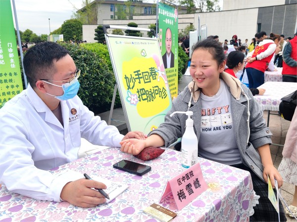 重庆移通学院大健康管理学院的学生志愿者,在綦江区中医院医护人员的专业指导下,为现场居民提供耳穴压豆、基础推拿按摩等理疗服务,切实将课堂所学的中医药知识转化为服务群众的实际能力。中药糕点品鉴与中药文创区同样人气爆棚,不少中药糕点由重庆移通学院学生参与制作,香囊、耳饰、手链、艾捶等可穿戴式中药配饰,打破了传统中医药的刻板印象,以轻盈时尚的方式走进年轻人的日常生活。学生们在参与制作与展示的过程中,不仅加深了对中医药文化的理解,更实现了中医智慧的传承与传播。