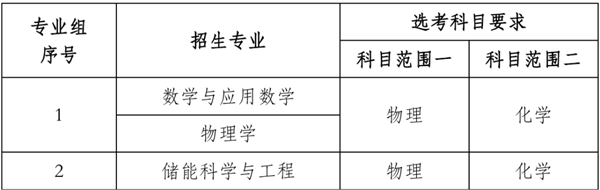 重庆大学强基计划招生专业为数学与应用数学、物理学、储能科学与工程,设置为两个专业组招生。