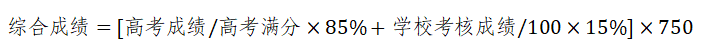 1.综合成绩(总分750.00分,精确至小数点后两位)由高考成绩和学校考核成绩两部分组成,折算办法如下: