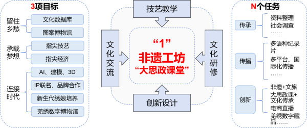 在“留住乡愁”方面,团队通过图案采集、传承人口述史记录等方式,建立了完善的文化数据库与图案博物馆,为民族记忆搭建起数字化存储空间;在“承载梦想”方面,工坊通过“指尖技艺”培训与“指尖经济”转化,精准对接市场需求,在助力留守妇女、残疾绣娘在家门口实现就业的同时,培育出一批如《羊角花开》系列的精品文创;在“连接时代”方面,项目引入AI设计辅助、数字建模、IP联名、新生代绣娘培养及数字博物馆建设等创新手段,让千年非遗与现代审美及数字技术实现跨界融合。