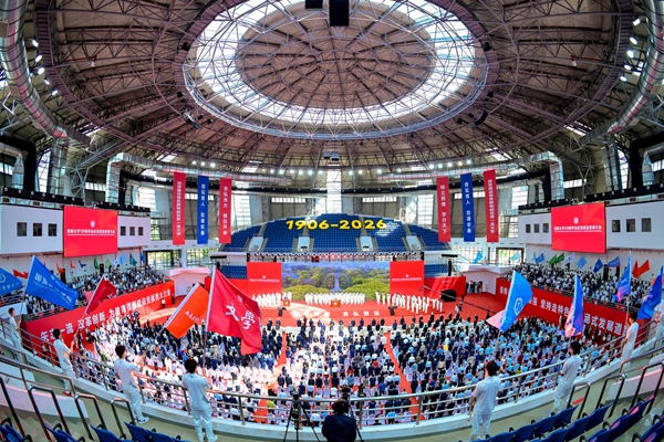 “近六万颗青春的心,今天,站在这里,把最深的敬意与感恩,献给您!”由本科生、硕士生、博士生及留学生组成的学生代表集体献词,向学校致以最真挚的祝福。“薪火相传,我们就是那一束闪耀的光!旗帜所指,我们就是那一面挺立的旗!”铮铮誓言尽显青年一代矢志报国、挺膺奋斗的时代担当。