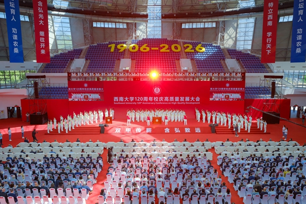 西南大学党委书记张卫国在主持讲话中向出席大会的领导嘉宾、师生校友等表示热烈欢迎和诚挚谢意。他指出,西南大学坚持社会主义办学方向不动摇,以红色基因铸魂育人、以党建引领把舵定向;坚持服务国家战略不动摇,与民族复兴同频共振、与国家发展同向同行;坚持落实立德树人根本任务不动摇,以桃李芬芳培育时代栋梁、以铁肩道义扛起育人担当;坚持特色发展不动摇,师范与农学两翼并举、传统与未来砥砺生长,走出了一条独具特色的兴校强校之路。120周年是学校办学历程的重要节点,立足新时代、面向新征程,西南大学将更加紧密地团结在以习近平同志为核心的党中央周围,坚持以习近平新时代中国特色社会主义思想为指引,矢志一流,改革创新,努力朝着建成特色鲜明的世界一流大学奋斗目标奋勇前进,为全面推进强国建设、民族复兴伟业作出新的更大贡献。