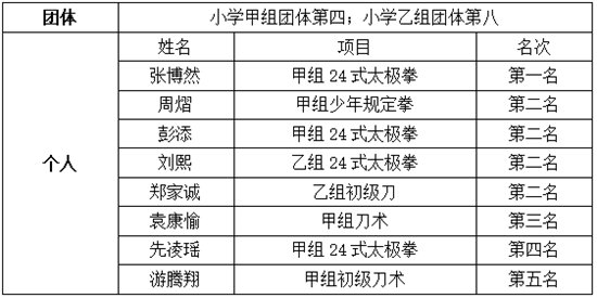 2020年12月底,由重庆市教育委员会主办的“2020年重庆市中小学武术比赛”落下帷幕,重庆师范大学附属实验小学武术队员参赛并取得了多个一二名,以及团体第四、团体第八的好成绩。