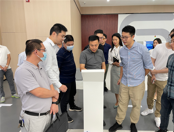西部分院院长张炎、副院长戴超陪同牟小雄董事长一行首先参观了基地制造业产业数字化示范区充电式办公笔记本示范生产线以及智能装配产线,体验笔记本下单、生产、组装、交付全流程,切身感受工业互联网定制化生产新模式应用,详细了解了成渝地区双城经济圈数字经济活跃度态势平台、数字化业务流程仿真公共服务平台等运行情况。