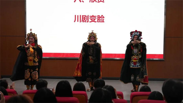 川剧传承人谭冬鸣老师通过声腔演唱、行当展示、变脸表演等形式,生动形象地给师生们分享了一堂精彩绝伦的川剧艺术课堂。协会川剧的老师们一曲《梨园唱响新征程》将活动推向了高潮!250名重庆科技职业学院师生课后纷纷表示第一次这么近距离地感受川剧,不仅提高了文化艺术素质,更燃起了对非遗文化的兴趣,希望有更多技能大师走进校园。
