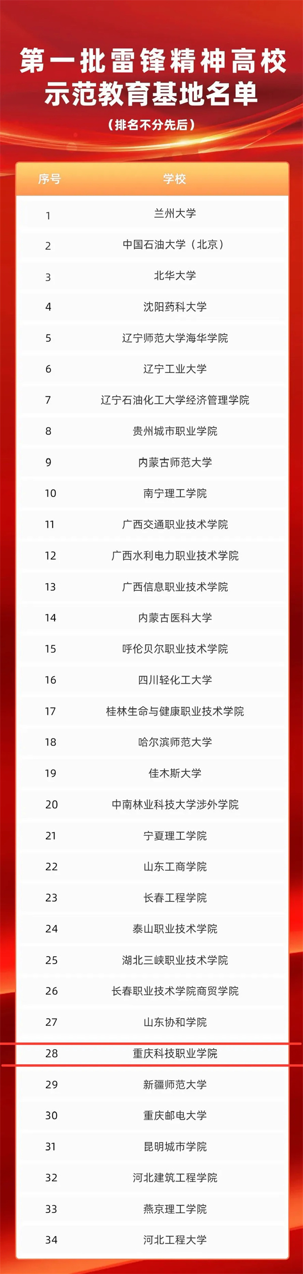 喜报|全国首批!重庆科技职业学院荣获“雷锋精神高校示范教育基地”称号