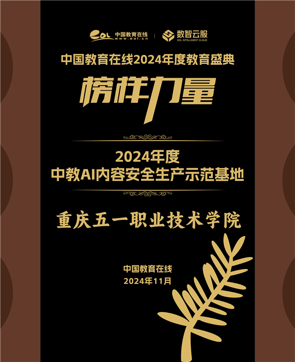 重庆五一职业技术学院荣获“2024年度中教AI内容安全生产示范基地”