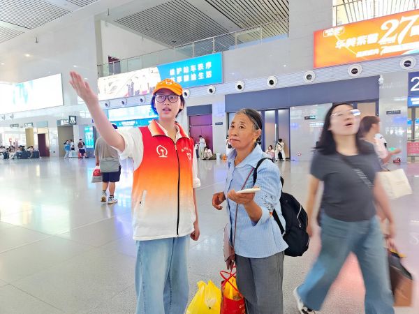 经过岗前培训后,这些志愿者身着统一的志愿服务服装,在重庆东站、重庆火车北站、永川东站、荣昌北站、潼南站、万州北站等多个铁路车站的关键点位上,协助工作人员开展了购票咨询、方位引导、安全提醒以及重点旅客帮扶等工作。