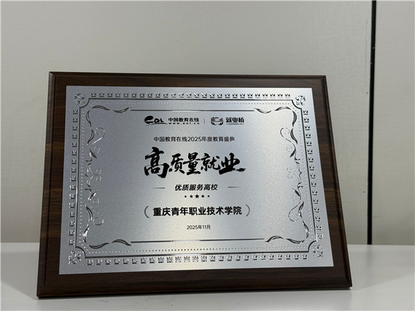为深入贯彻党中央、国务院关于促进高校毕业生等青年就业创业的决策部署,落实《人力资源社会保障部 教育部 财政部关于做好2025年高校毕业生等青年就业工作的通知》等最新政策精神,挖掘和推广就业工作典型。中国教育在线·就业桥举办了“高质量就业”2025年度教育盛典活动,表彰高校就业工作数智化转型,创新实践的优秀案例,对推动高校就业跨越式发展,汇聚创新动力的榜样单位进行推广。重庆青年职业技术学院应邀参选并荣获“2025高质量就业·优质服务高校”。
