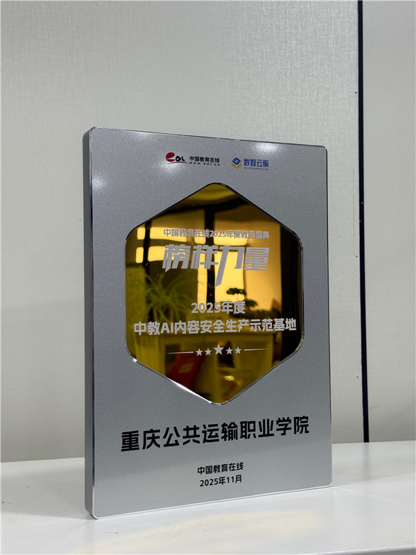 此次重庆公共运输职业学院荣获“2025年度中教AI内容安全生产示范基地”称号,是对学校内容生产的巨大鼓励与鞭策。未来,学校将以此为新的起点,继续加大在内容、对内外品牌形象塑造方面的投入与创新力度,进一步整合资源、优化平台、丰富内容、提升服务,充分发挥在教育传播、文化传承、社会服务等方面的独特作用,为学校建设营造更加良好的舆论环境,为推动高等教育事业的高质量发展贡献更多的智慧与力量。