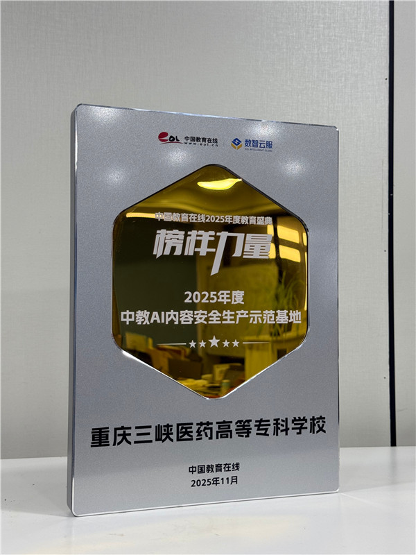 近日,中国教育在线“榜样力量·2025年度教育盛典”优秀案例名单公布。重庆三峡医药高等专科学校凭借在新媒体领域的卓越成就与深远影响力,荣获“2025年度中教AI内容安全生产示范基地”。
